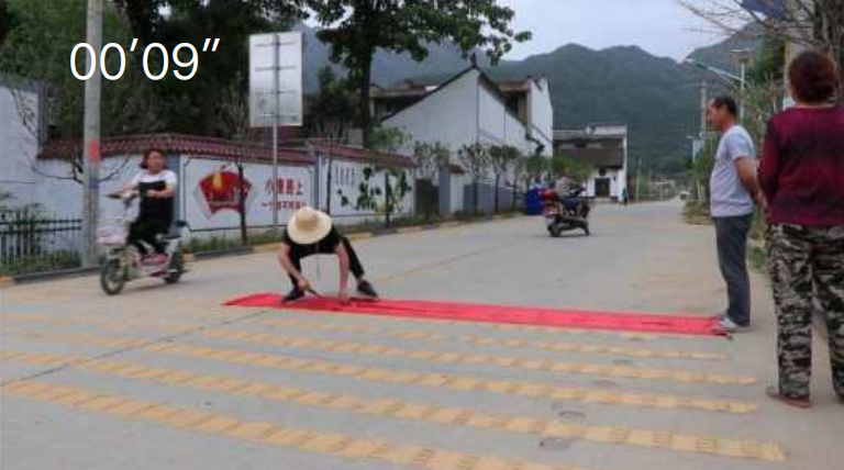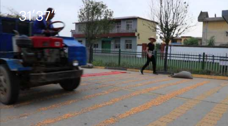 In 2018 I stumbled into the village of Caijiapo and came into contact with the only local primary school, Jinlong Primary School, where there were no safety warnings along the road in front of the school and the speed bumps were aged and posed a serious safety risk. Here I tried to slow down the passing cars by sunning the grain.